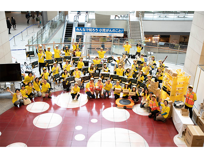 会場では、小児がんの治療に従事する医師、薬剤師、臨床検査技師、カウンセラー、小児がんなどを克服された方々で結成されたブラスバンド「Swing for Kids」が2回にわたり華やかな演奏を披露しました。