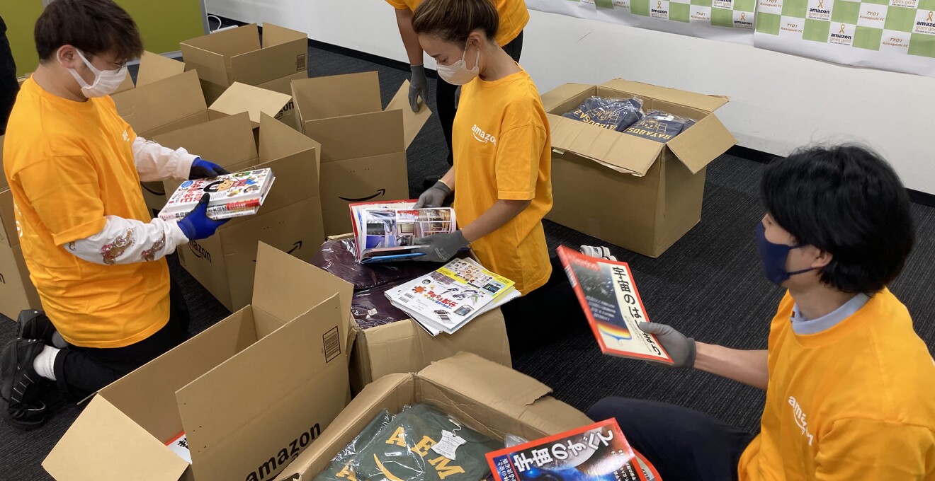 もうひとつの取り組みでは、ボランティアネットワークAmazon Givesの有志社員たちが、宮城県立こども病院で、小児がんと闘う子どもたちに書籍などを寄贈しました。これらの寄付品は、全国の物流拠点のメンバーが協力して箱詰めの作業を行い、可愛らしくデコレーションされた配送車で病院を訪問しました。