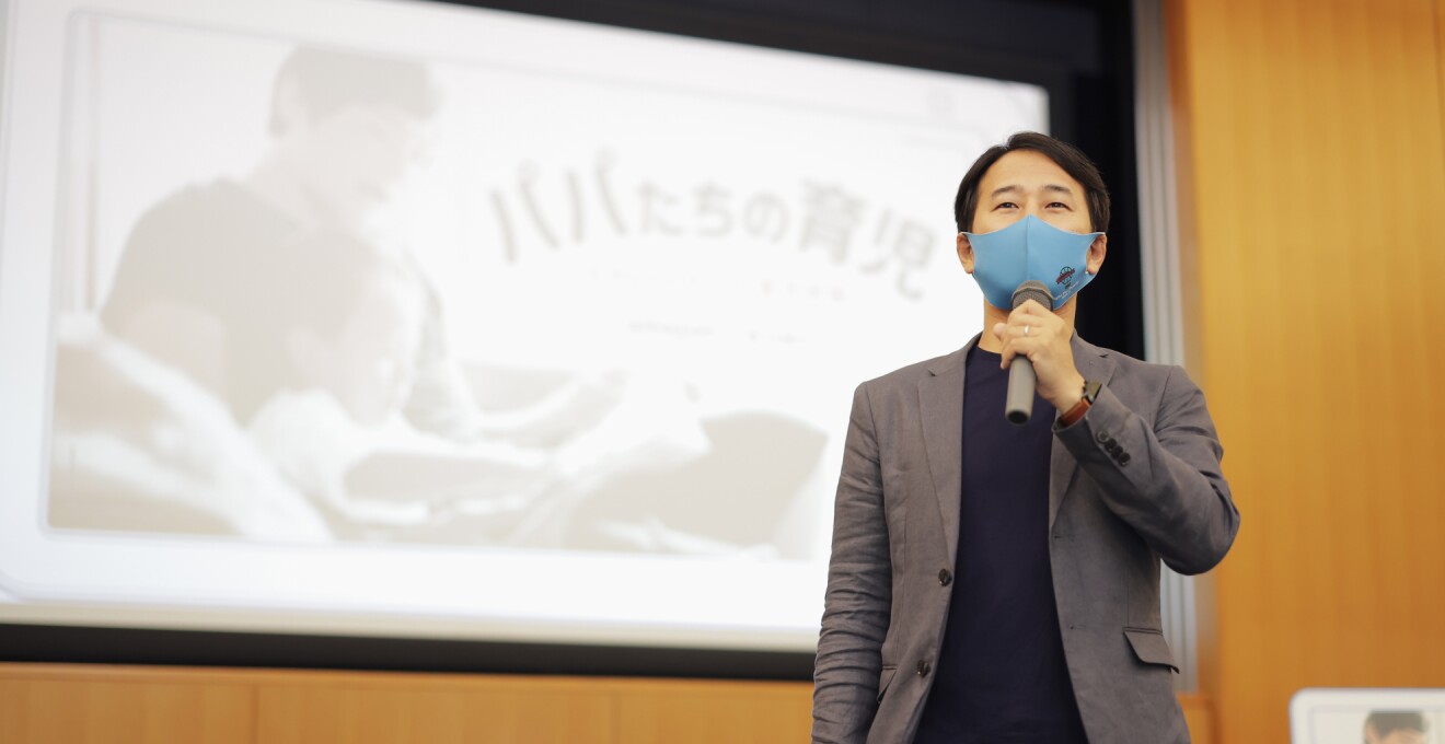 2022年7月、佐賀市にて小さなお子さんを育てるパパたちが集まり、座談会が開催されました。会の冒頭で、佐賀市の坂井英隆市長があいさつをしました。坂井市長は、自身も0歳児と4歳児のお子さんを持つパパ。昨年12月に第二子が生まれたことをきっかけに、佐賀市長として初めて育児休暇を取得しましたが、「休暇」というにはほど遠い、自分の時間もとれないような日々の連続で、育児の大変さを身をもって体感したと話しました。「今回は、困りごとを皆さんでシェアすることで、育児の悩みを解決するきっかけにしていただきたい」と今回の取り組みへの意気込みを伝えました。