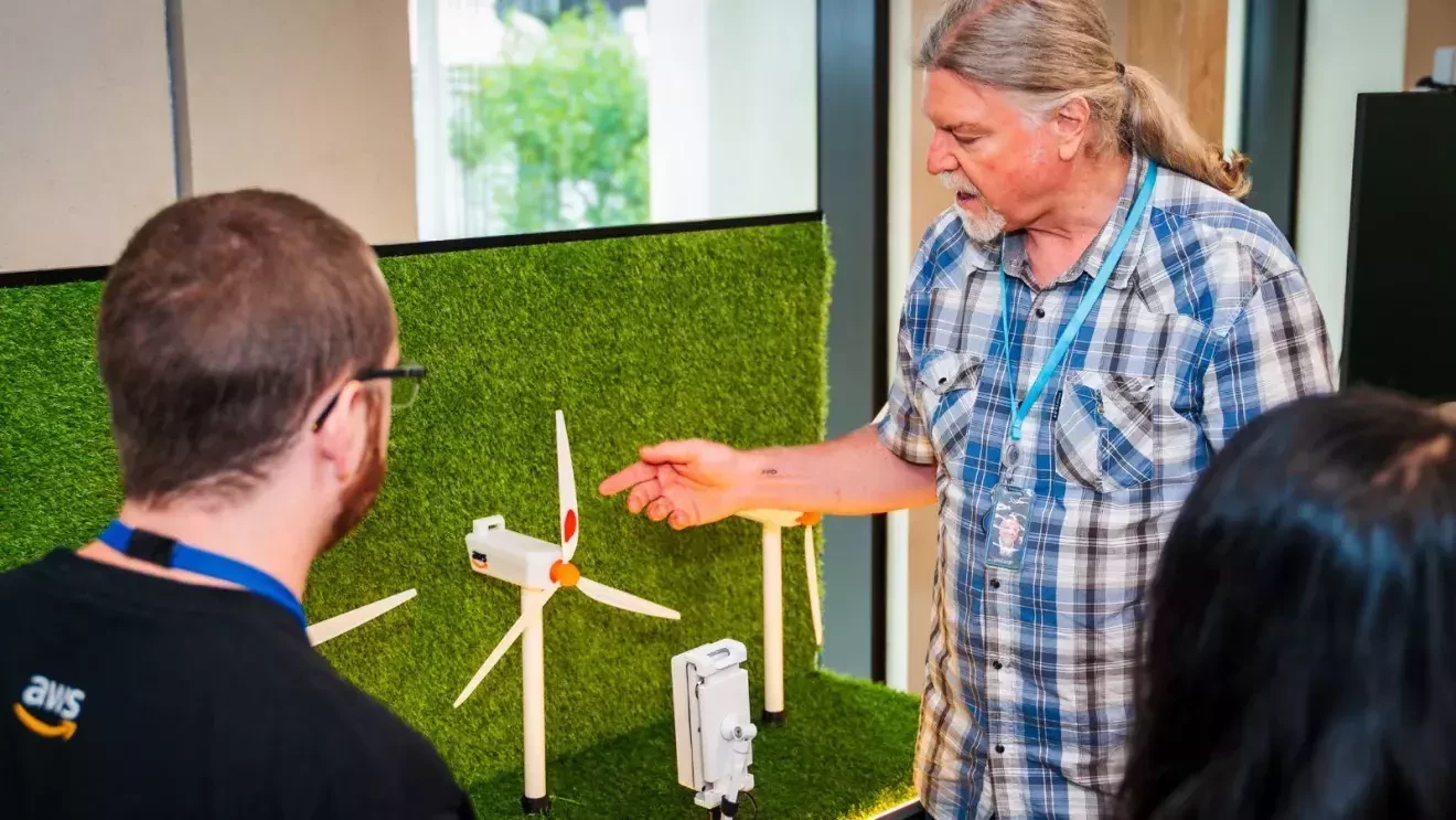 各タービンには複数のIoTセンサーが搭載されており、AWSに送り返されたテレメトリーデータを処理して、使いやすいダッシュボードとデジタルツインに表示します。音声起動方式のドローンはウェイポイント間を自律飛行でき、風力発電事業者がアクセスできるよう、ダッシュボードにライブ映像をストリーミングすると同時に、コンピュータビジョンを利用して異常な画像を探して特定します。