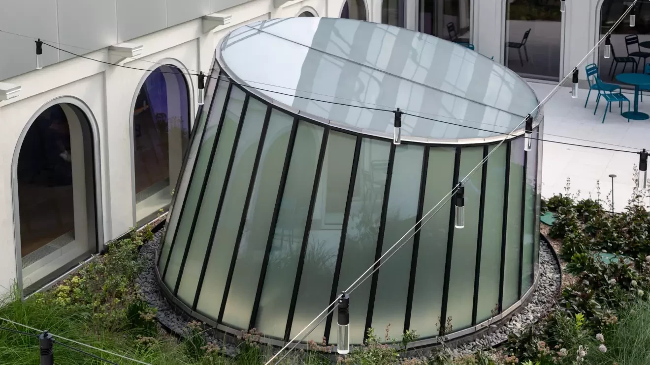 屋内では螺旋(らせん)階段が各フロアを結び、スタッフがカフェ、テラスや中庭へ簡単にアクセスできます。