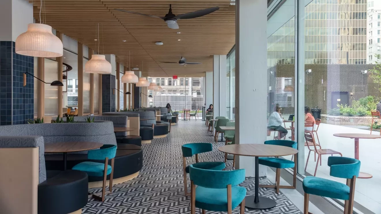 ここでは、スタッフは開放的で光あふれる環境でコーヒーや食事を楽しむことができます。また、同僚と昼食を共にしたり、気軽なミーティングを行うのにも最適です。