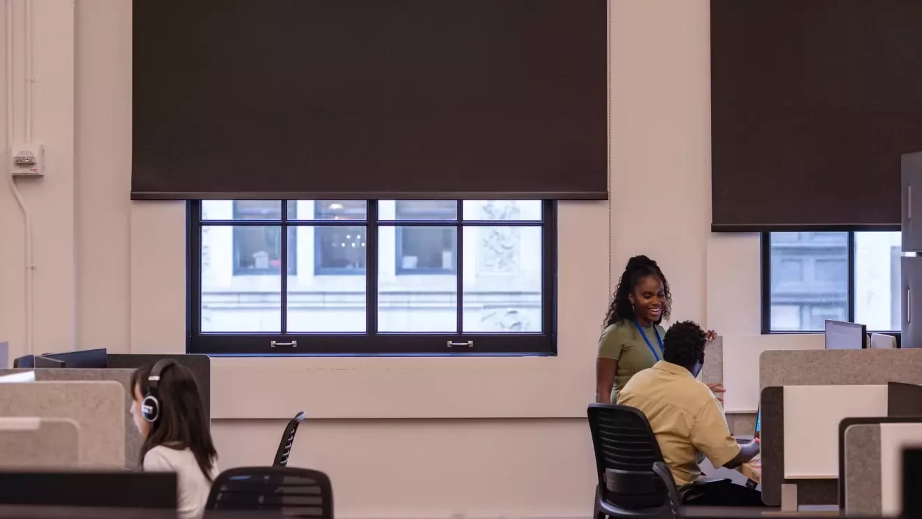 1階には、コミュニティ用の教室兼イベントスペースが設けられています。Amazonはニューヨーク市立大学(CUNY)と提携し、約140平方メートルのスペースを、CUNYに属する25のカレッジが大学や大学院レベルの授業、学生による発表、採用イベントや同窓会などを開催するために提供しています。