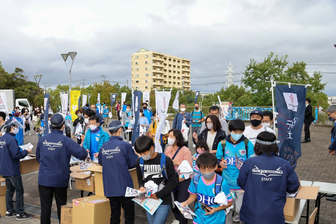 10月10日、Amazonは、佐賀県にある、物流拠点・鳥栖フルフィルメントセンター(以下、FC)とJリーグのサガン鳥栖の連携によって製造された総社デニムマスクの新作お披露目会を、サガン鳥栖のホームスタジアムである駅前不動産スタジムで実施し、あたたかい拍手に包まれました。浦和レッズとの試合を前にスタジアムでは、およそ5000人の来場者全員にこの新作総社デニムマスクが配布されました。