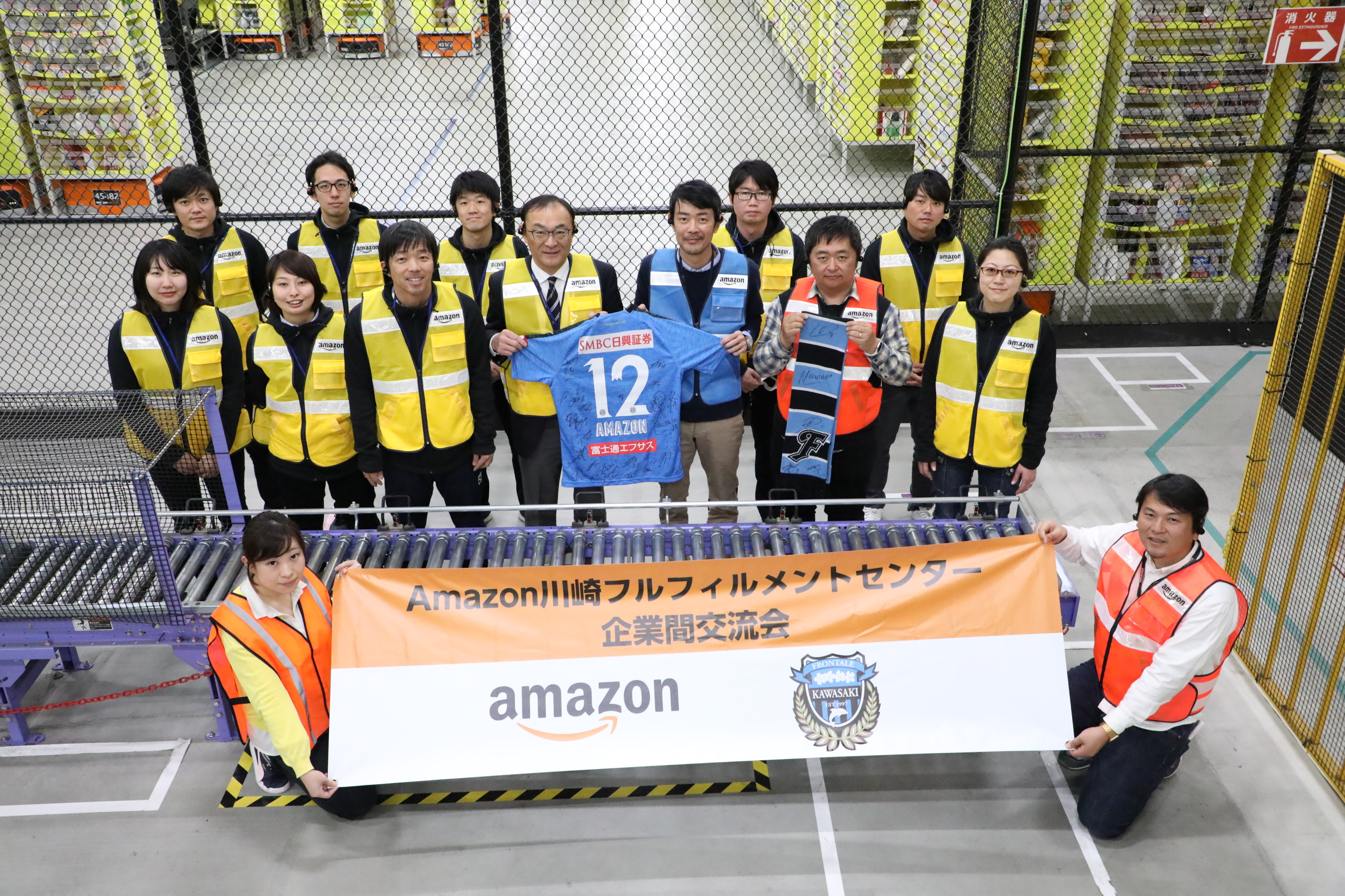 2019年3月上旬、神奈川県川崎市に立地するアマゾンジャパンの物流拠点「川崎フルフィルメントセンター」(以下、川崎FC)は、同じく川崎市をホームタウンとするプロサッカーチーム「川崎フロンターレ」と、現場の作業効率や職場環境の向上について意見交換を行う交流会「Amazon safety & kaizen session」を開催しました。