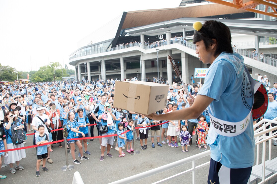 また、川崎フロンターレの中村憲剛選手もサプライズで作業体験に参加して、多くのサポーターが見守る中で、商品を無事にBOXに梱包するまでの作業が完了すると、会場からは大きな声援が送られました。