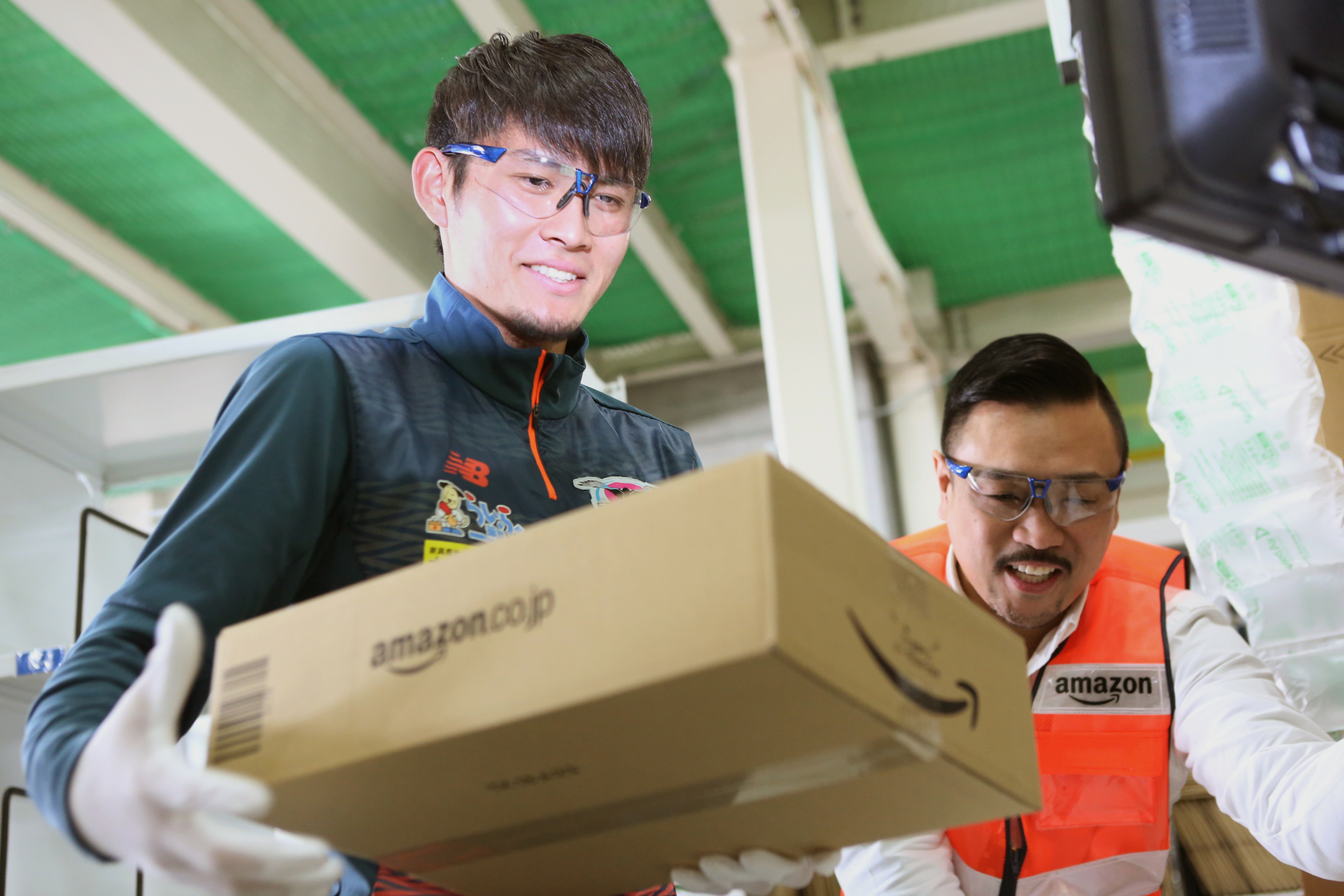 AmazonのFC(フルフィルメントセンター)での素晴らしい職場環境を地域の皆様にお伝えする1日。地域貢献活動の一環として、アマゾン鳥栖FC近隣のベストアメニティスタジアムをホームスタジアムとして活躍するプロサッカーチームサガン鳥栖の田川亨介選手、原川力選手を鳥栖FCにお招きして、職業体験プログラム「Amazon Leadership Experience Program」にご参加頂きました。Amazonでは各FCの所在地にて、自治体、学校、企業、地域コミュニティなどを対象に様々な地域貢献活動を実施することで、積極的に「人の交流」を行っています。これは、2015年より鳥栖高校で実施している職業体験プログラム・ジョブシャドウに続いて、地元の若者の未来を応援するための取組みです。また、プロスポーツ選手がAmazonのFCのプログラムに参加するのは今回が初めてです。