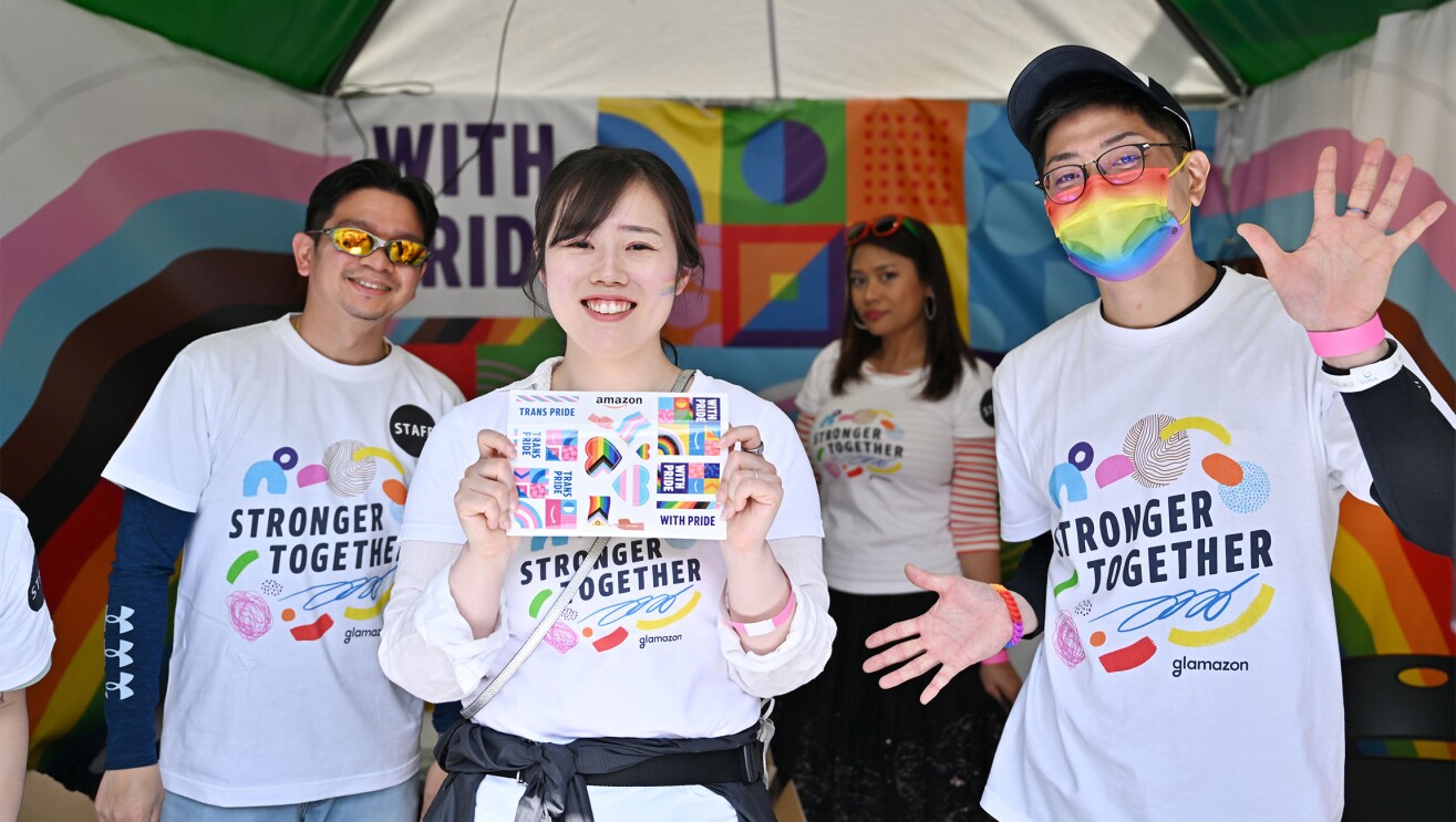 その考えを実践するアクションの1つとして、Amazonは東京レインボープライドが開催される時期を中心に、プライドを祝いLGBTQIA+やアライ(支援者)の方々への支援の気持ちを伝えるためにさまざまな取り組みを行います。その中から主な3つの取り組みをご紹介します。