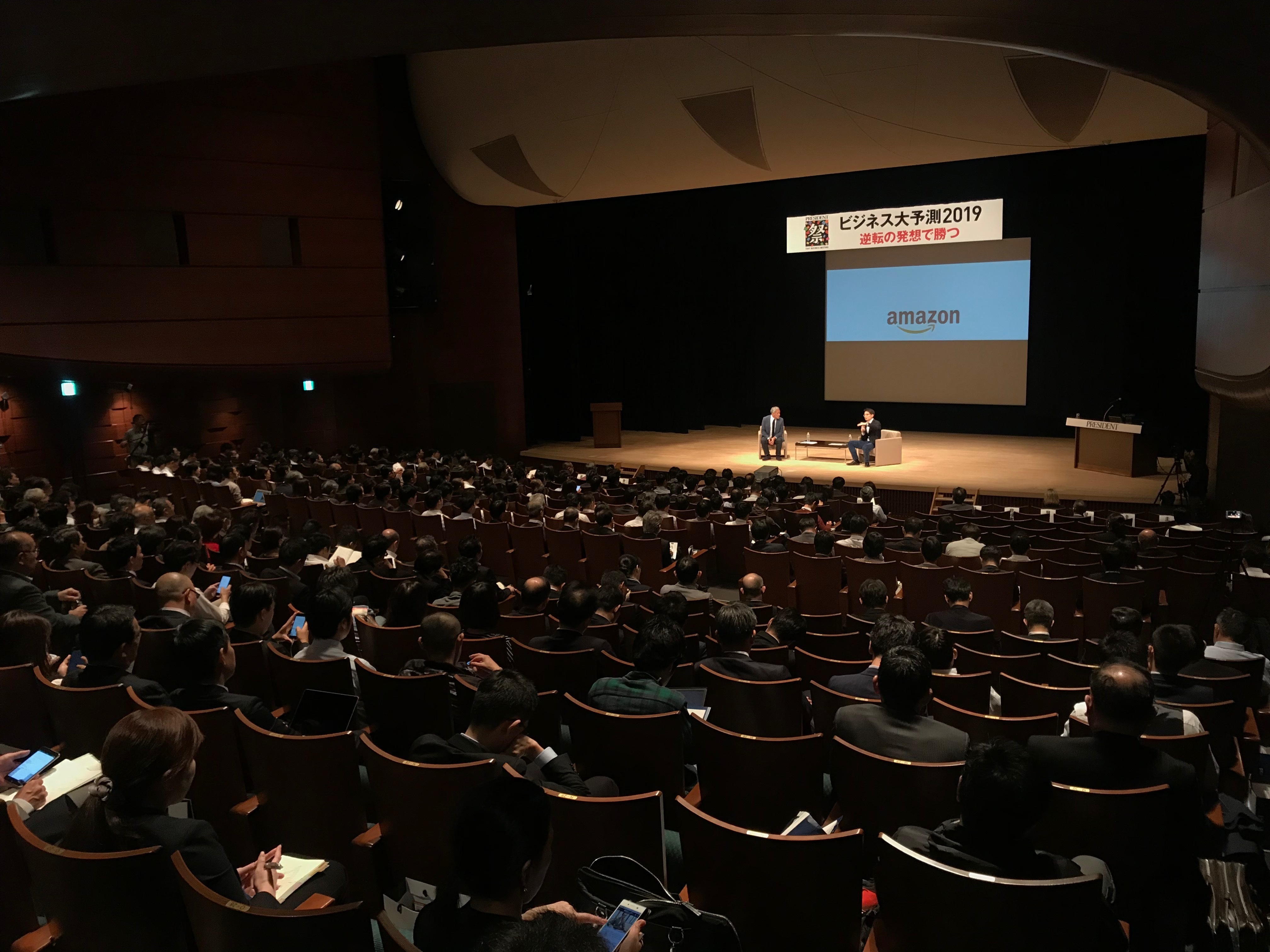 2018年11月13日、プレジデント社主催、「逆転の発想で勝つビジネス大予測2019」が都内イイノホールで開催されました。その第2部で「最先端企業の働き方」をテーマにアマゾンジャパン社長 ジャスパー・チャンが、法政大学教授/一橋大学特任教授 米倉誠一郎氏と対談を行いました。