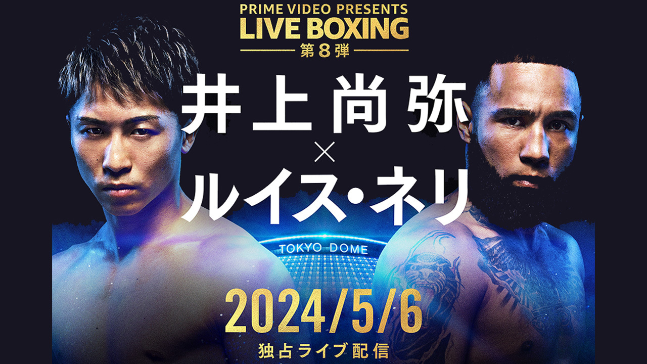 2024年5月6日(月・振替休日)に東京ドームで行われる4団体統一世界スーパーバンタム級タイトルマッチ、4階級制覇王者の井上尚弥選手(31歳=大橋)対元世界2階級制覇王者のルイス・ネリ選手(29歳=メキシコ)をメインカードとする4試合の世界タイトルマッチを、『Prime Video Presents Live Boxing 8』として独占ライブ配信します。東京ドームでボクシングが行われるのは1990年2月の世界ヘビー級タイトルマッチ、マイク・タイソン選手対ジェームス・ダグラス選手以来、34年ぶりとなります。