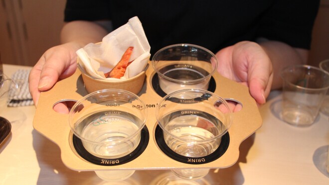 試飲スペースでテイスティングを楽しんだら、再びカテゴリーを選び直して、新しいお酒を注文します。今度は「日本酒」の中から3杯を選択しました。入場料に含まれるテイスティングセットは3回分、合計9杯のお酒を試すことができます。もっと楽しみたいという方は追加での購入も可能です。