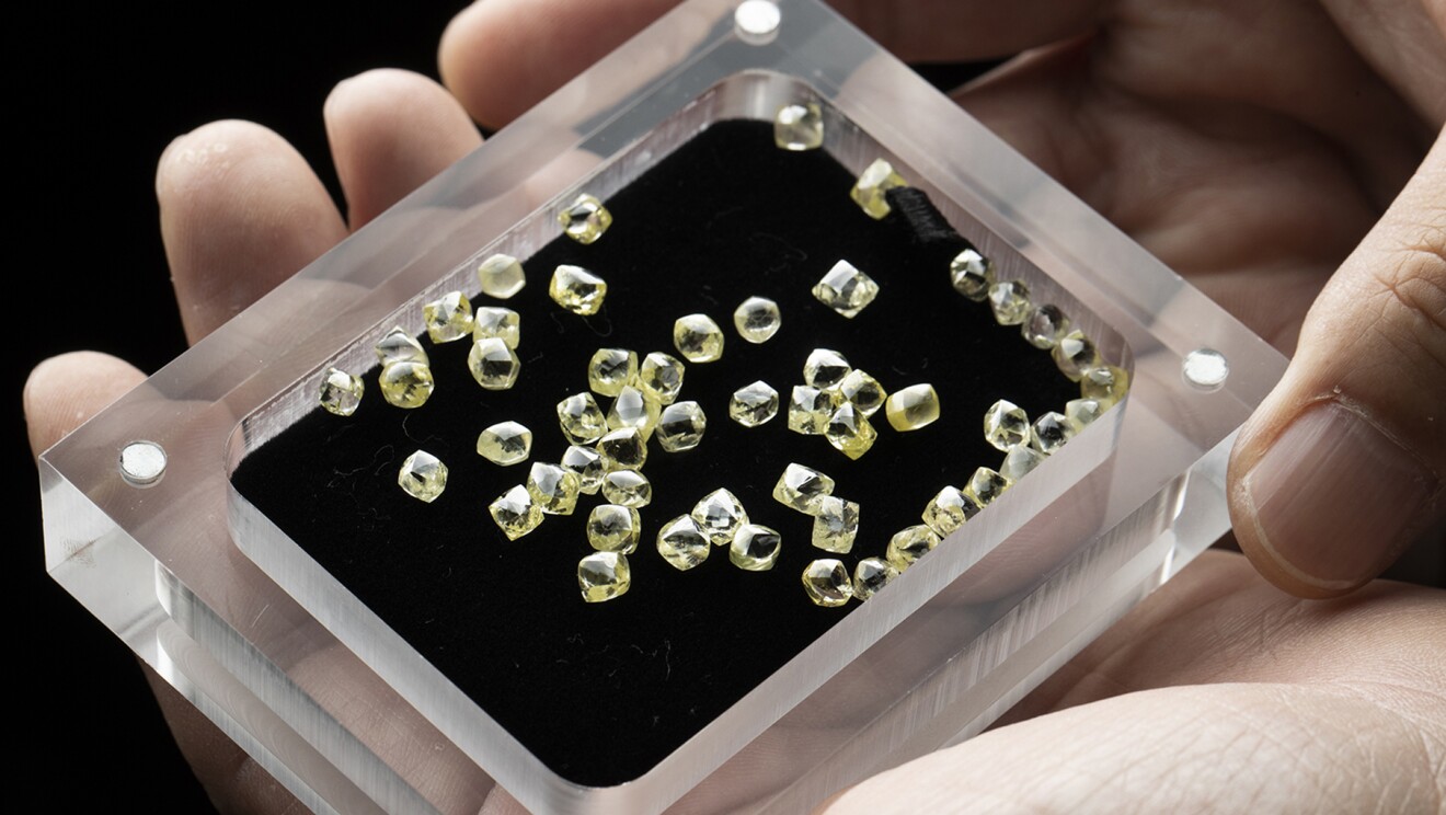 濱田さん「ダイヤモンドは、天然に存在する物質の中で最も高い硬度を持っています。そのダイヤモンドの原石を加工し、工具を作るのが当社の事業です。高い硬度を維持した工具であるため、超硬合金やセラミックスといった硬い物質の加工に向いており、工具が摩耗しにくい特長があります」