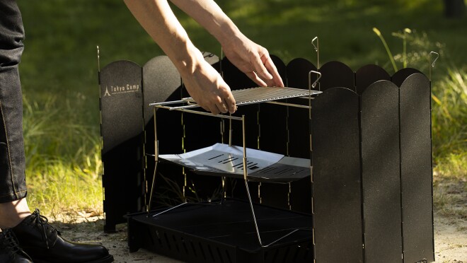 吉川さん「元々はECでカー用品を販売していましたが、キャンプ好きの家族や友人に影響されて、自分もキャンプにハマってしまいました(笑)。ただ、ユーザー視点に立つと、高額すぎて手を出せないギアと、安くて品質の悪いギアに市場が二極化されていることに疑問を感じました。これからキャンプを始める人も購入しやすい価格帯で、品質にはとことんこだわったギアを作れないか。そう考えてデザイナーや工場の方と議論や試作を重ね、2020年7月、ようやく理想の焚き火台の販売にこぎ着けたのです」