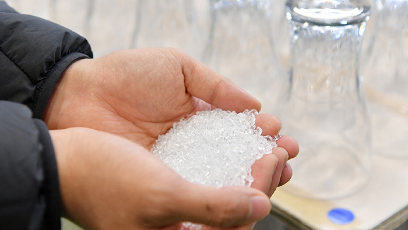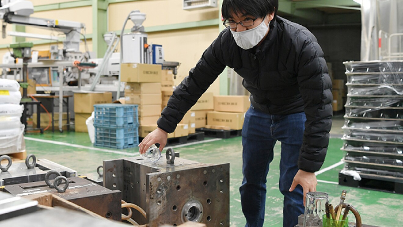 「長く使うサステナブルという点では、こんなに適した樹脂素材はありません。製造の過程でどうしても出てしまう不良品も、また納品後に使われなくなった廃棄品も、すべて溶かして原料の状態に戻すことができるのです。現在、当社製品の半分ほどがトライタンを原料にしており、納品先からの廃品回収の取り組みも始めています。再生しやすいよう単一素材で作りながらも、魅力ある製品をつくれないかと考えました」