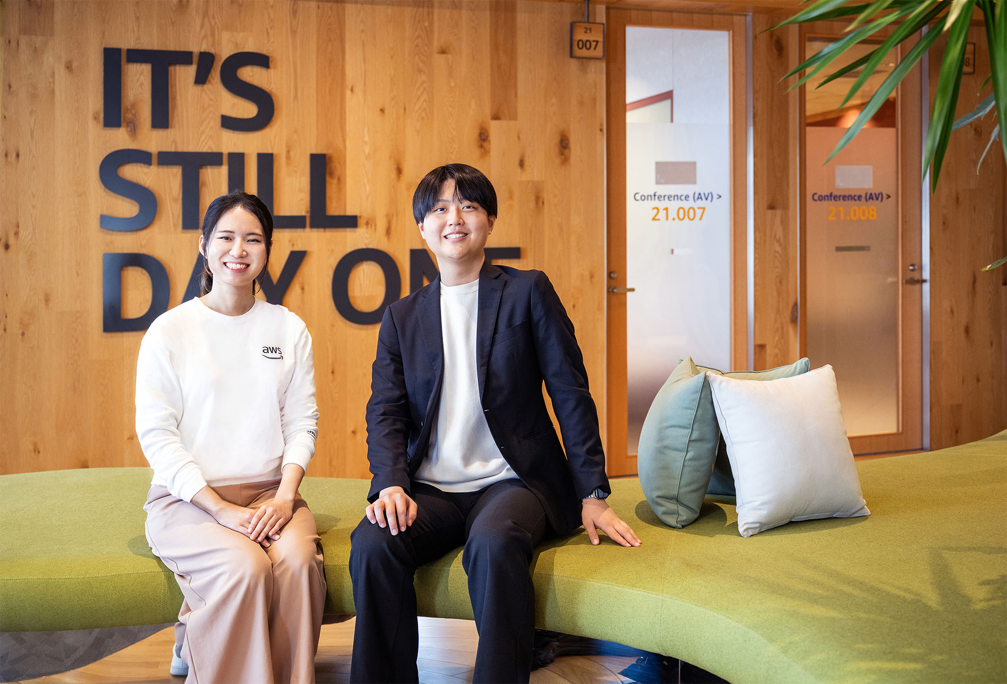 「Amazonの働きやすさは、風通しがよく、自分がやりたいことを実現しやすいことです。新人時代は、どうしても誰かに聞いたり、話したりするのに気後れしがちです。私もそうでした。でも、Amazonではそんな遠慮をする必要はありません。むしろ、わからないことはすぐに聞き、やりたいことはマネージャーやバディに相談するといいと思います。実は先輩方も、新入社員のことをもっと知りたがっているんです。積極的に動けば、道はどんどん広がっていきます。挑戦することを楽しんでほしいです」(呉さん)