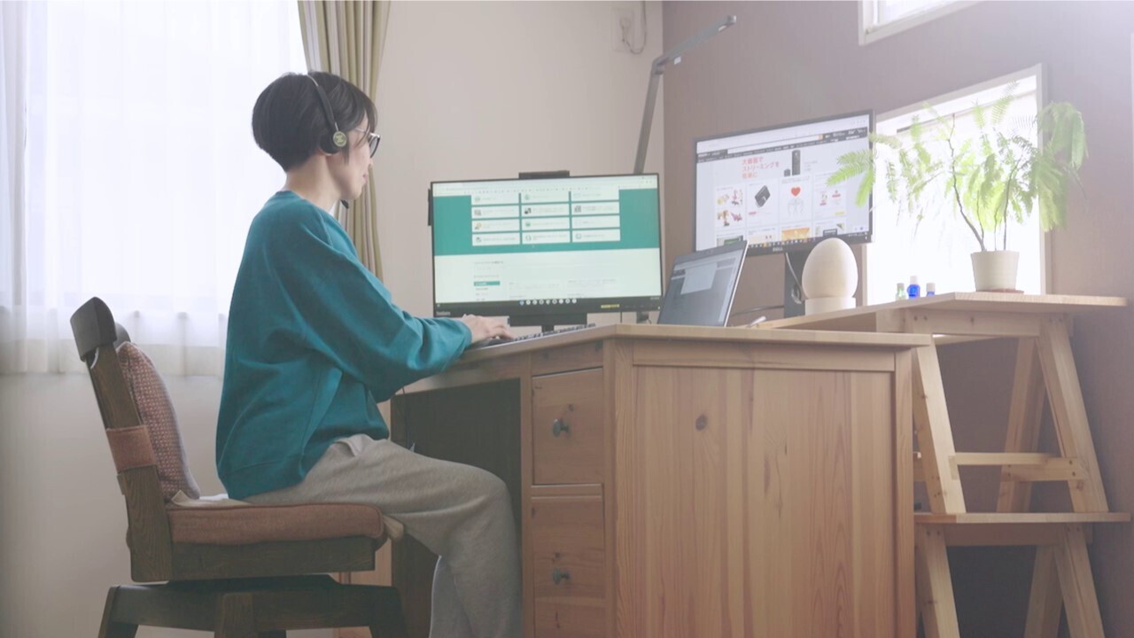 24時間お問い合わせ可能なCSの仕事はさまざまな時間帯のシフトがあり、日勤には早番と遅番があり、ほかに夜勤があります。アソシエイトだった頃は、植村さんは日勤を選んでいましたが、チームマネージャーになってからはチームのメンバーをサポートするため、夜勤を務めることもあります。夜勤については、自宅だからこそ続けられています。